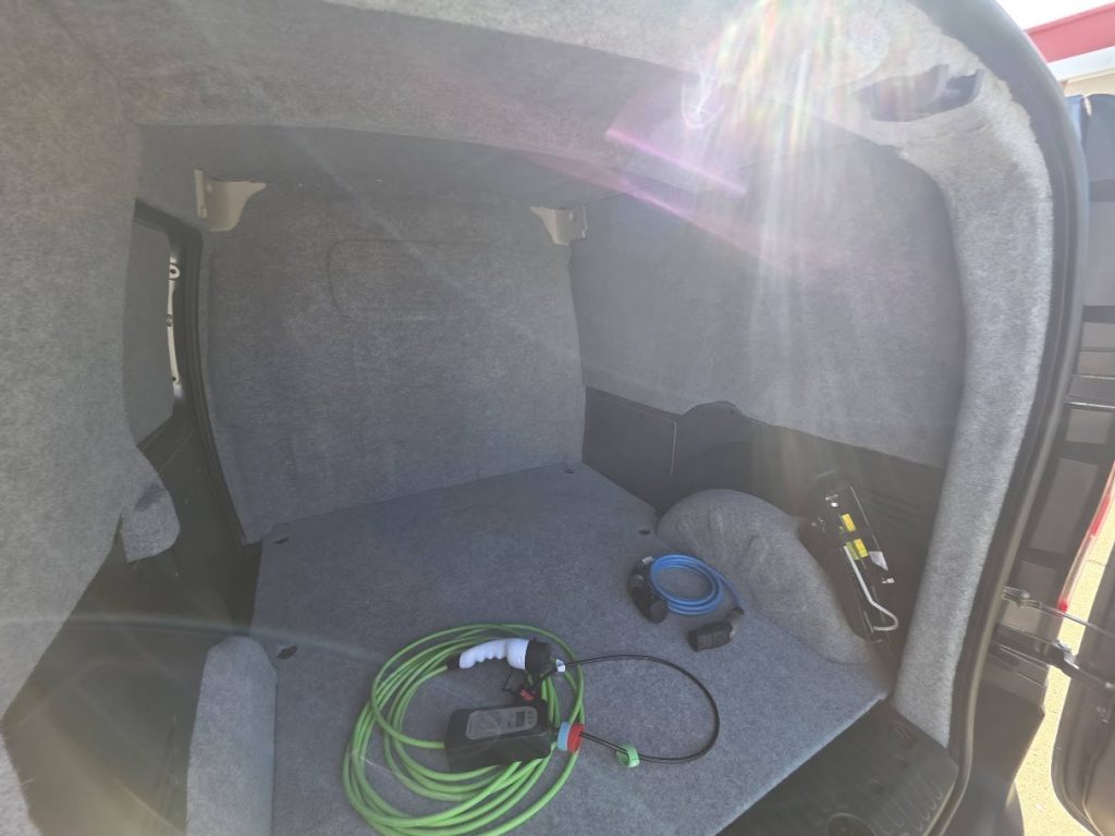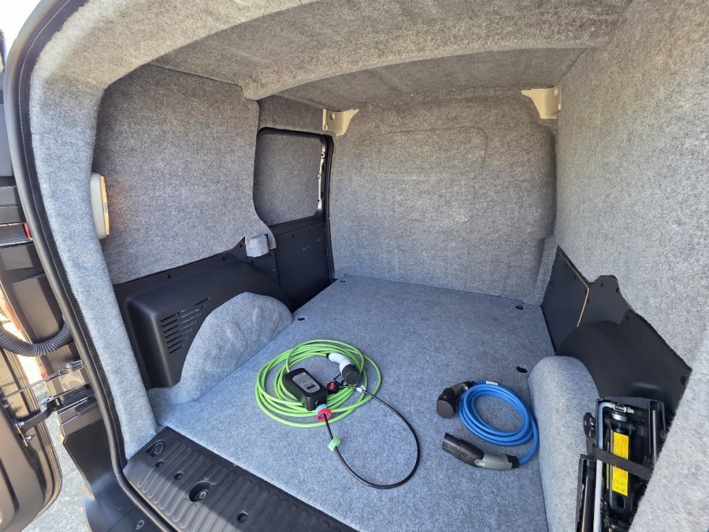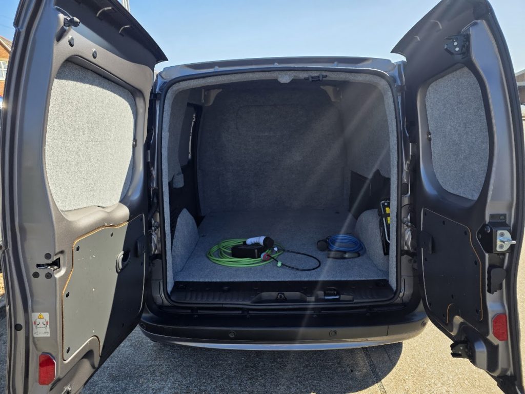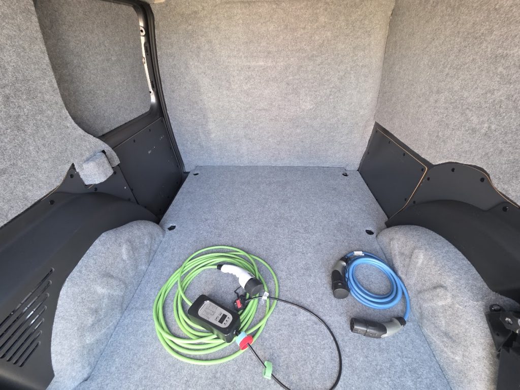 Charging is AC only, through a Type 2 port at the front of the van. Full charge time (0–100%): 3 hours 40 minutes.